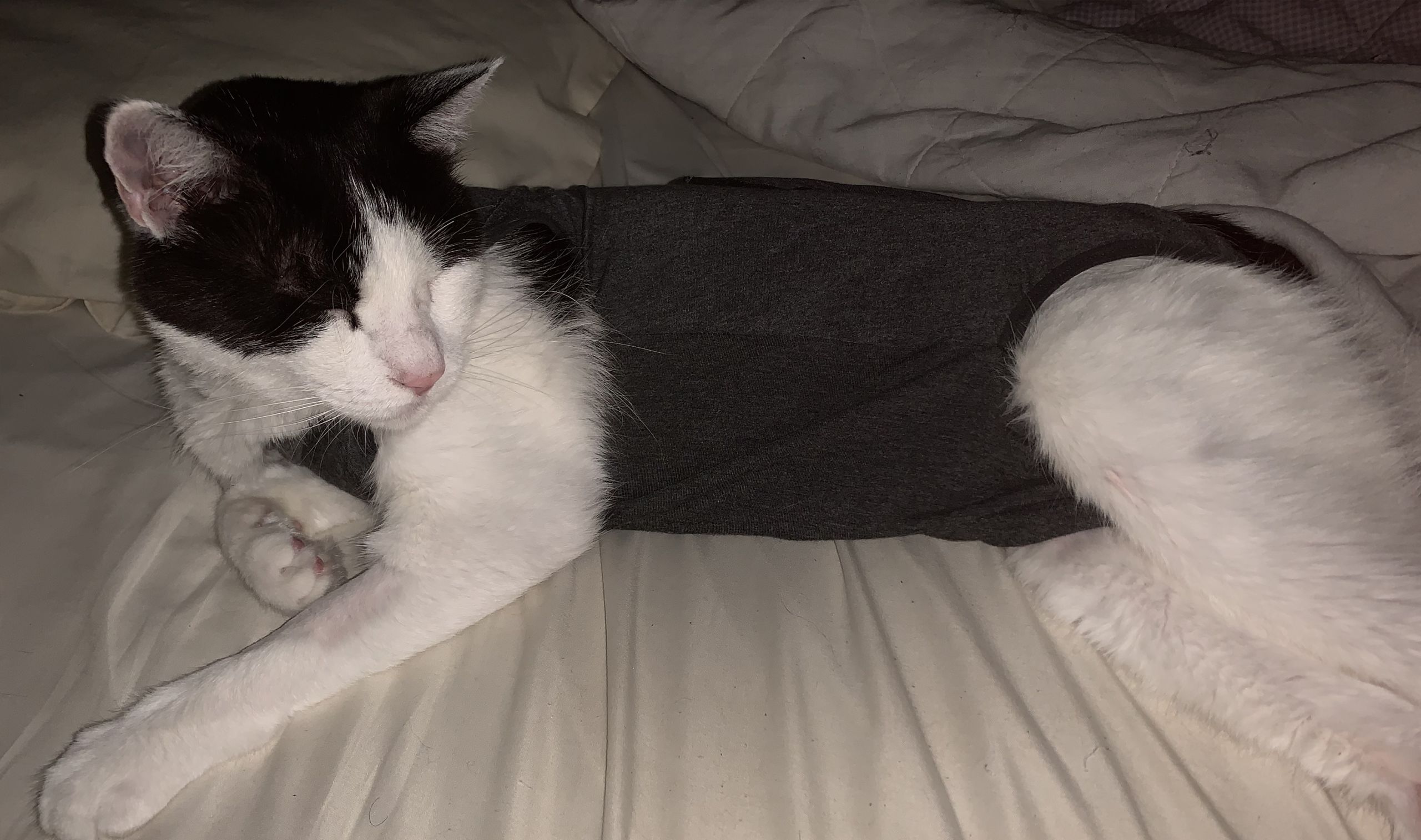 "This is Moses, one of a pair of rescue cats that we initially fostered and then adopted during lockdown. Shortly after we started fostering him we noticed he had quite shallow breathing, so we took him to the shelter approved-vet who referred him on to the RVC for further examination. The staff at the QMHA were brilliant and really looked after him whilst he underwent lots of tests.
